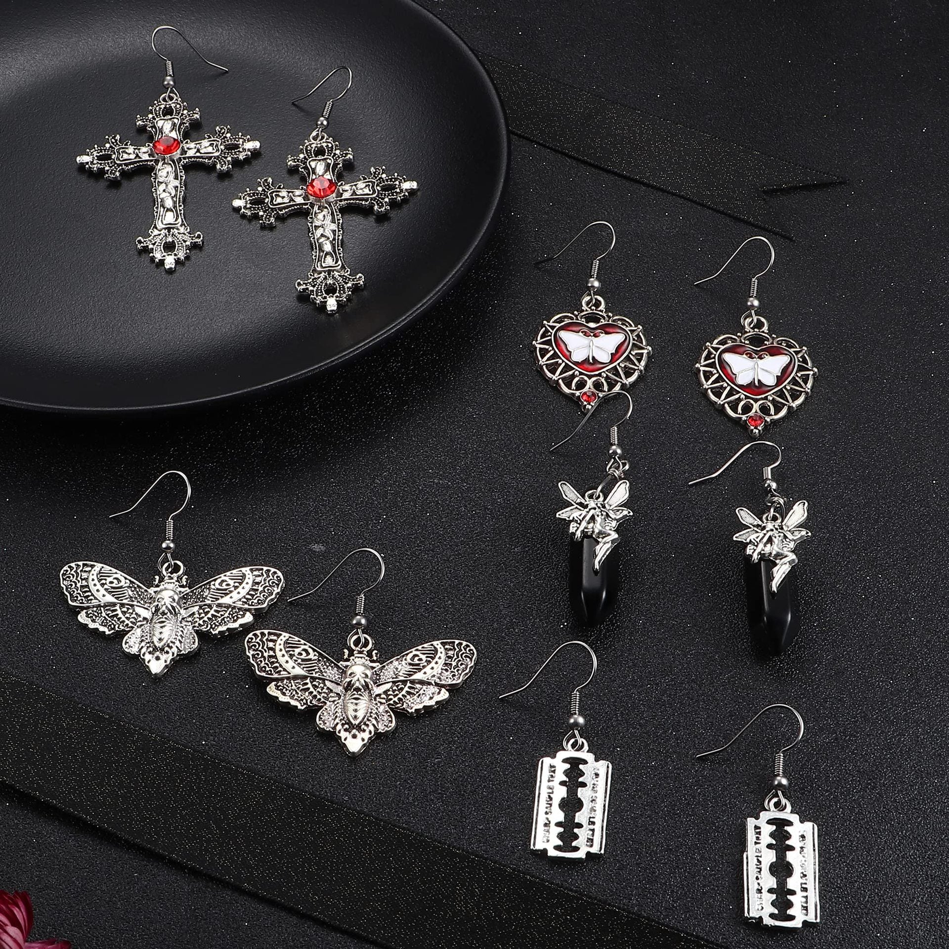 Wholesale Halloween Fashion Gothic Silver Vintage Skull Butterfly Earrings