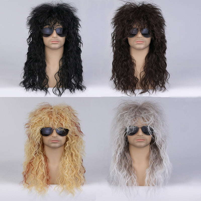 Wholesale Long curly hair stage men's fluffy hairstyle wig