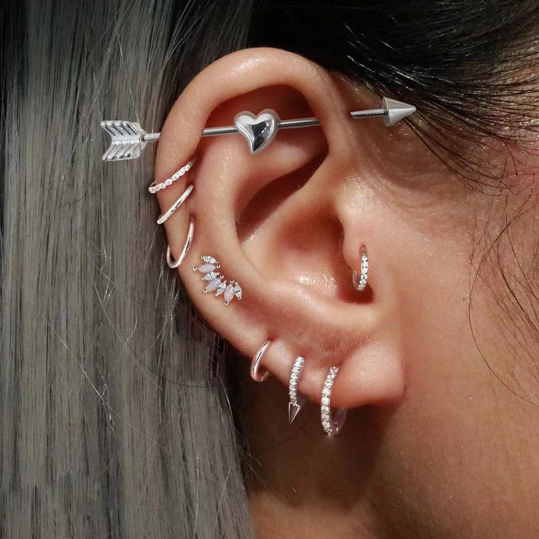 Wholesale Love Puncture Diagonal Stainless Steel Earrings