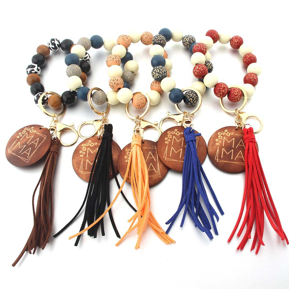 Wholesale MAMA Wooden Plaque Wooden Beads Tassel Bracelet Keychain
