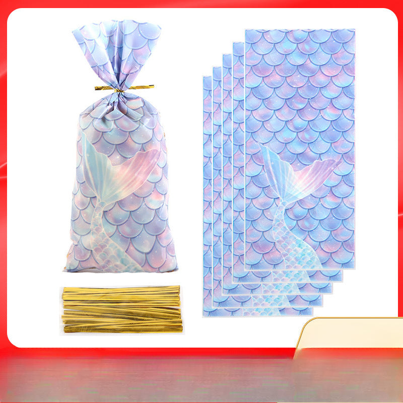 Wholesale Mermaid Scale Pattern Color Printing Flat Mouth Color Printing Candy Biscuit Packaging Bag
