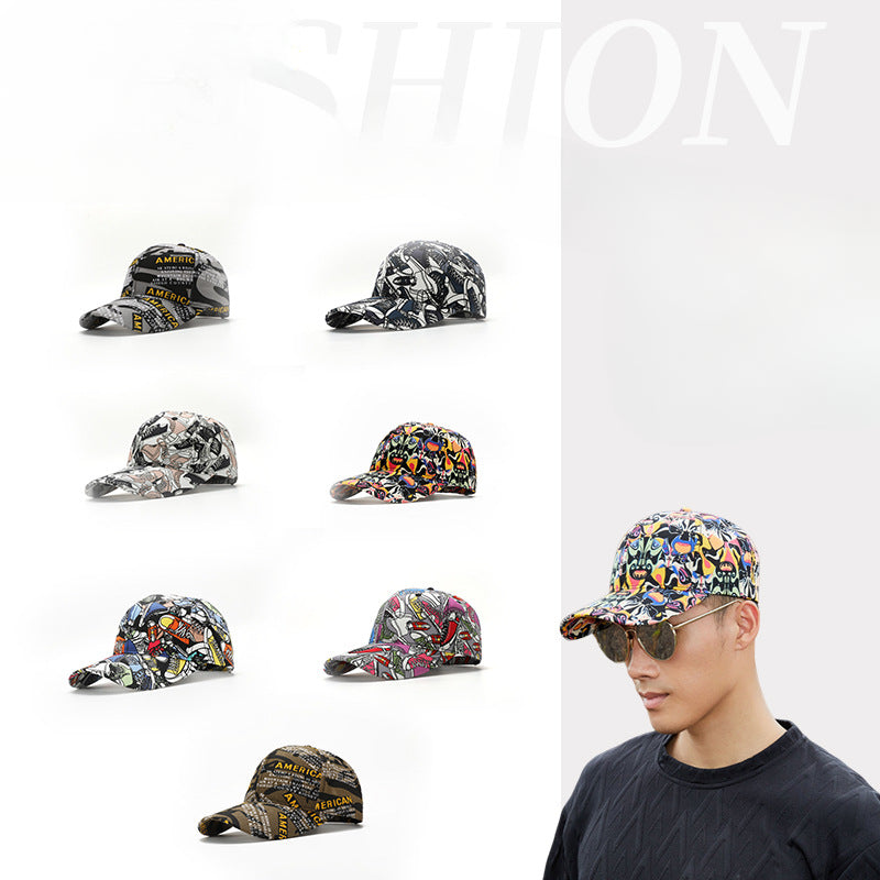 Wholesale New Graffiti Lettering Print Hard Top Big Head Around The Face Small Hat Baseball Cap