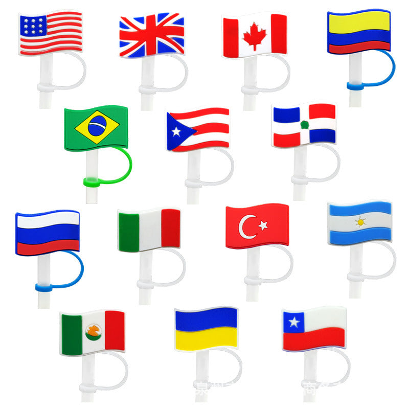 Wholesale of 10pcs Flag Series Silicone Straw Sets