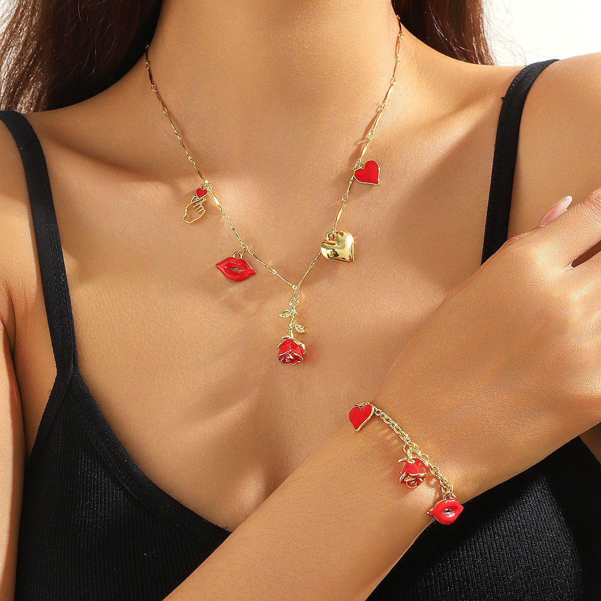 Wholesale Red Rose Zinc Alloy Bracelet and Necklace Valentine' s Day Jewelry Set
