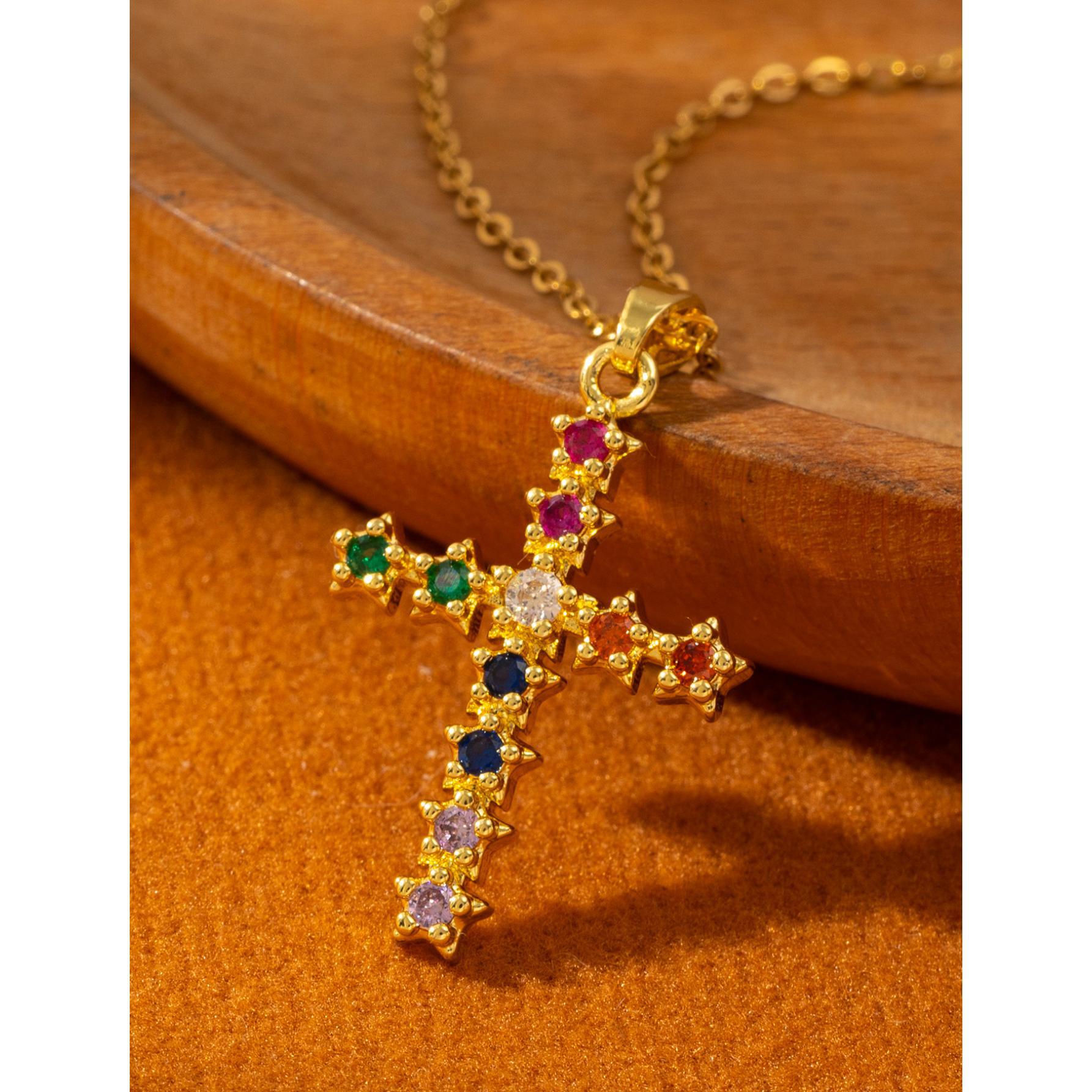 Wholesale Simple Color Zircon Star Cross Necklace Pendant All-match Niche Elegant Clavicle Chain for Women