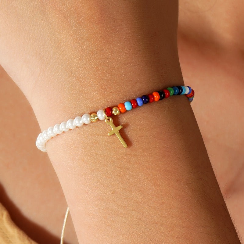 Wholesale Simple Style Fashion Cross Color Beads Imitation Pearl Bracelet