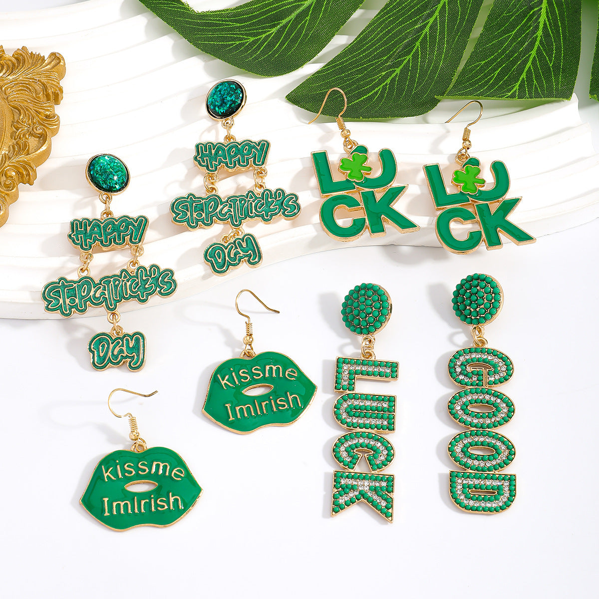 Wholesale St. Patrick' s Day Green Letter Blingbling Earrings