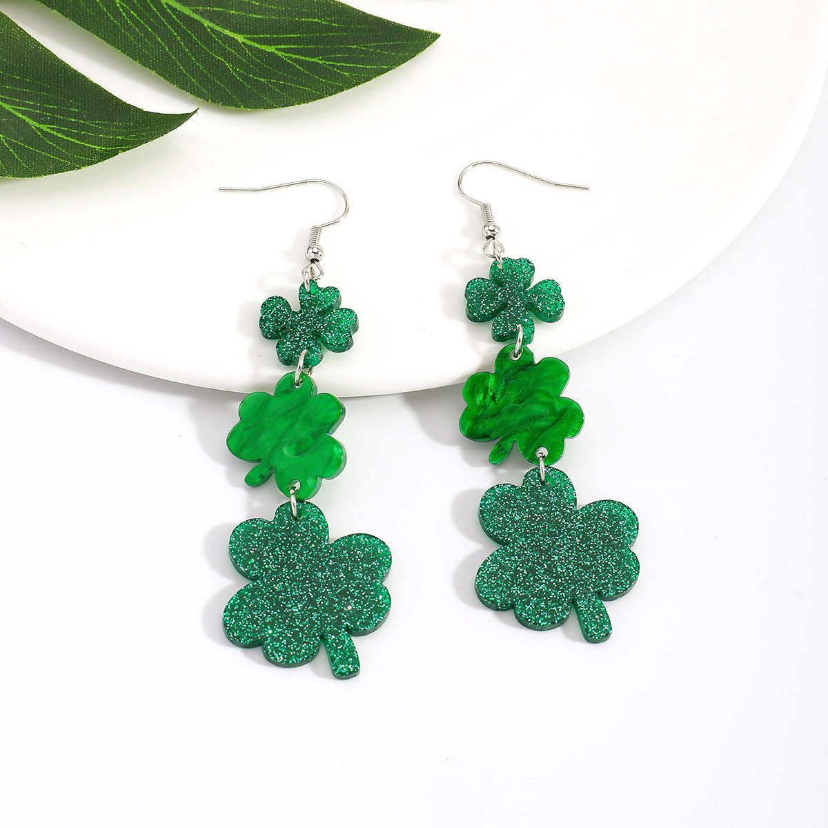Wholesale St. Patrick' s Day Shamrock Hat Letter Rainbow Acrylic Earrings