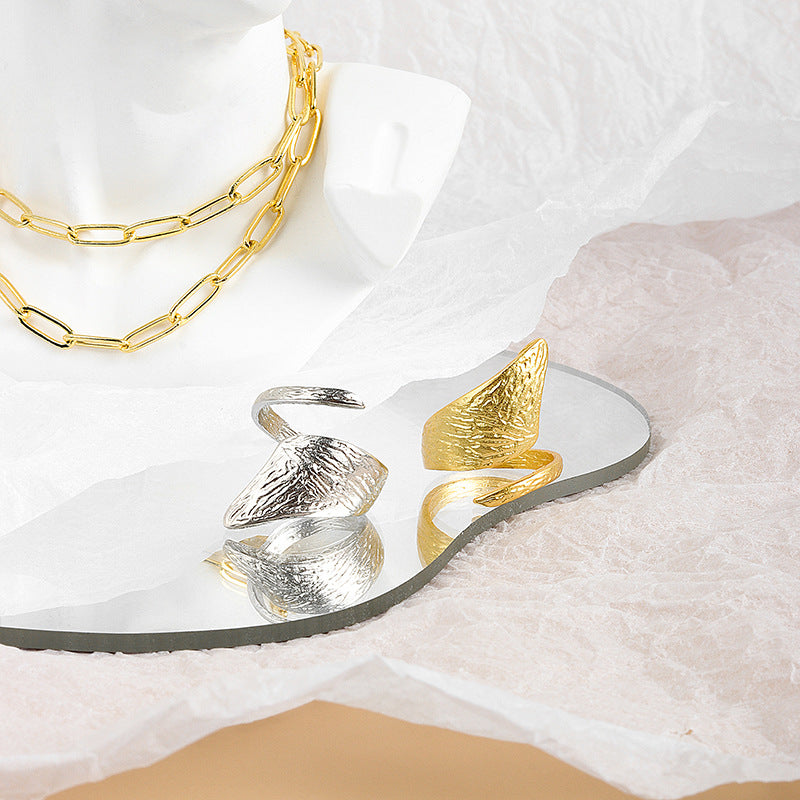 Wholesale Textured Concave and Concave Foil Wide Open Ring