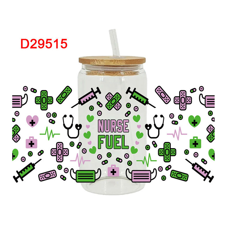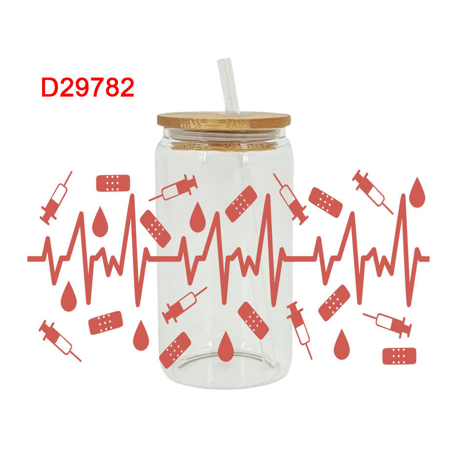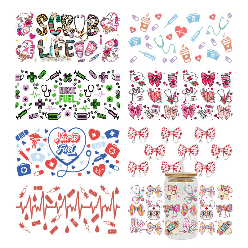Wholesale Colorful bow tie ECG medical series 16oz Cup UV DTF Wraps