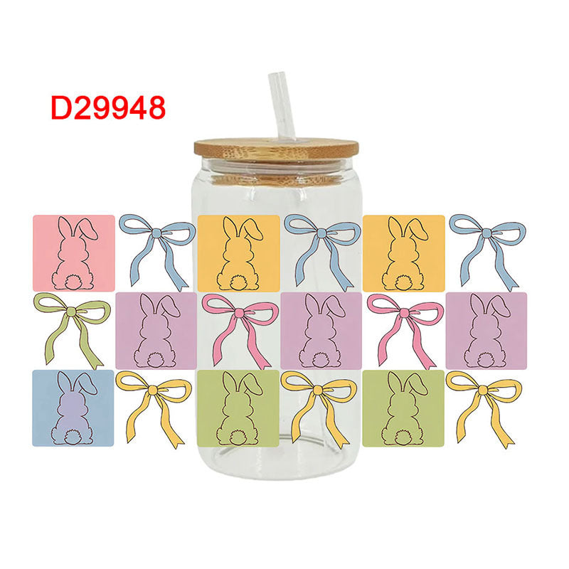 Wholesale Colorful bowknot cartoon rabbit Easter series 16oz Cup UV DTF Wraps