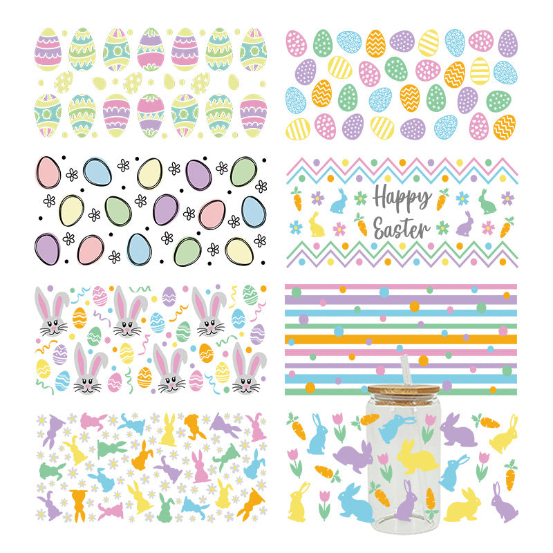 Wholesale Easter cartoon egg rabbit 16oz Cup UV DTF Wraps