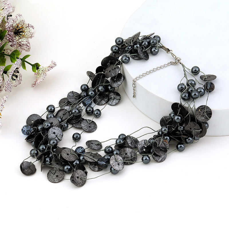 Wholesale Vintage Crystal Grey Pearl Coconut Shell Necklace Clavicle Neck