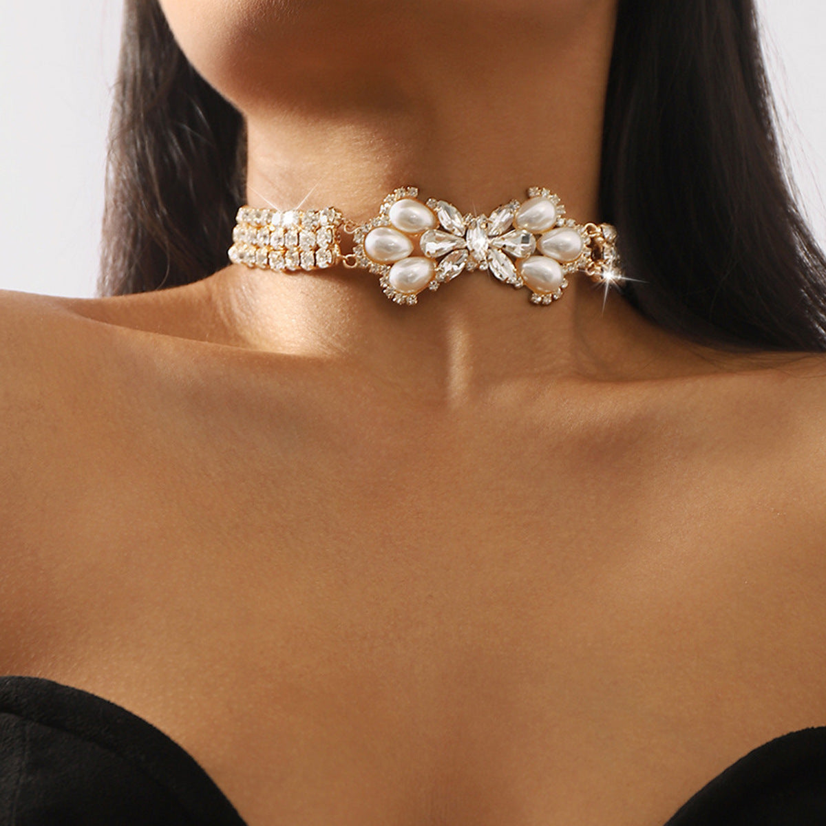 Wholesale Vintage Diamond Pearl Bow Necklace