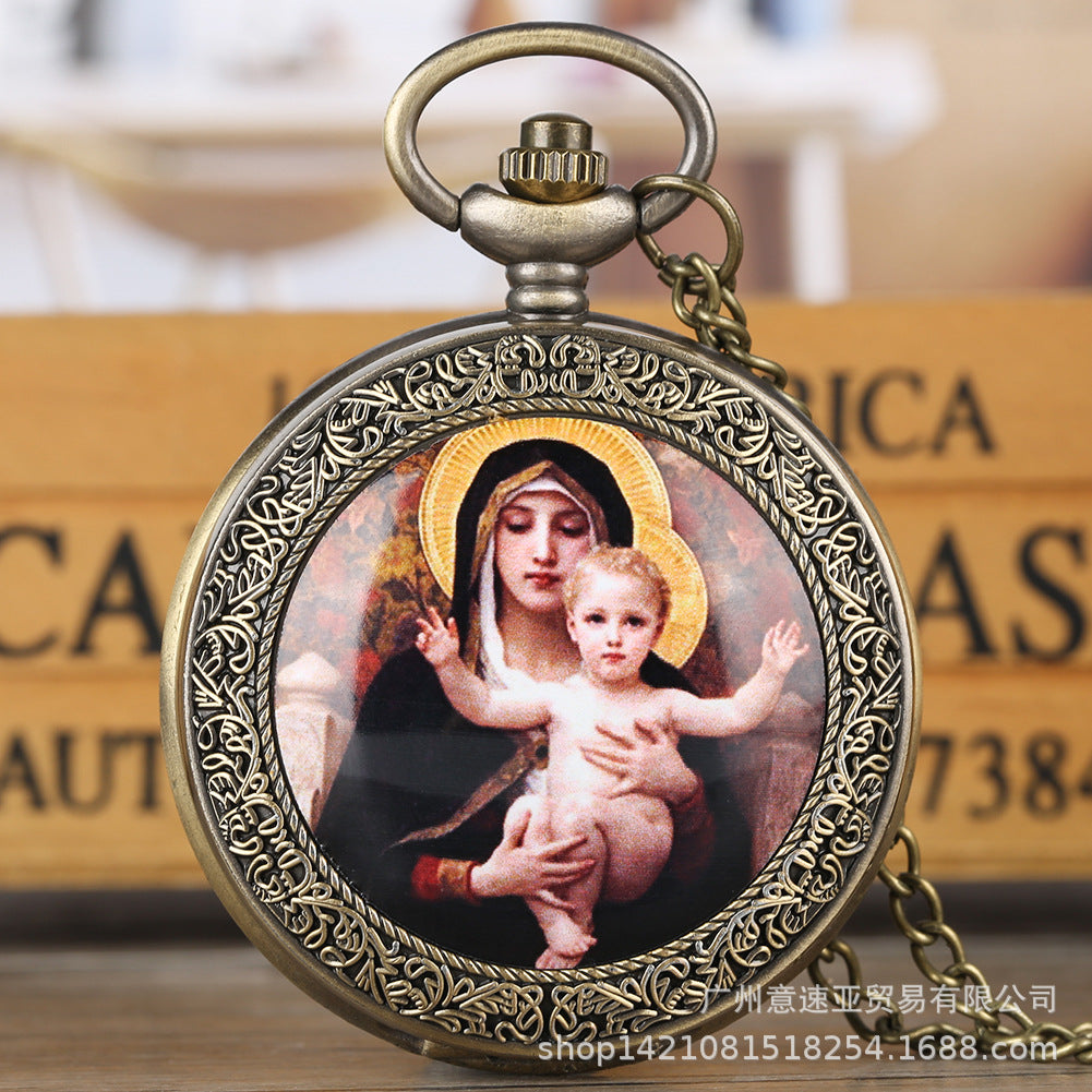 Wholesale Vintage Large Virgin Mary and Jesus Theme Quartz Pocket Watch