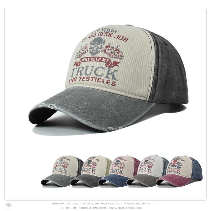 Wholesale Washed Distressed Print Fashionable Color Blocking Outdoor Sun Shading Baseball Cap