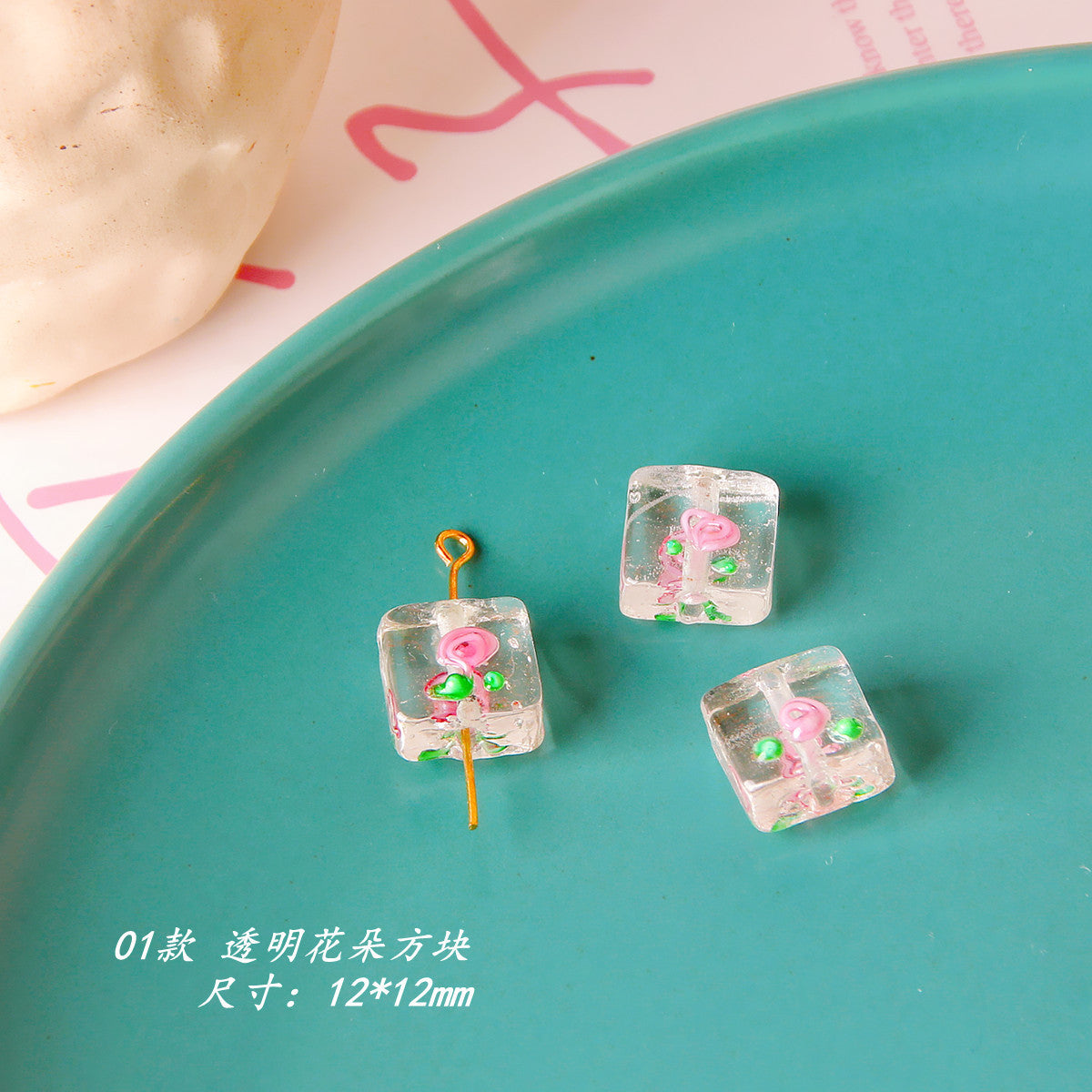 Wholesale 12mm Vintage Square Flower Glass Beads