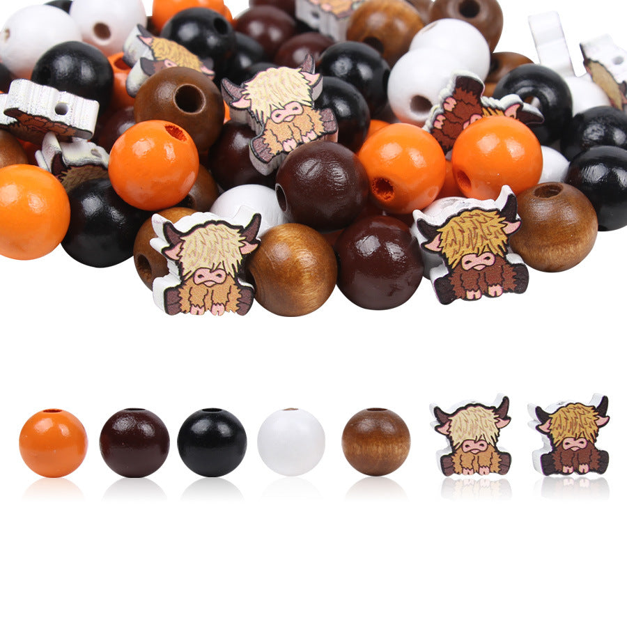 Wholesale 20pcs 16mm Cow Color DIY Wooden Beads Hemp Rope Accessories