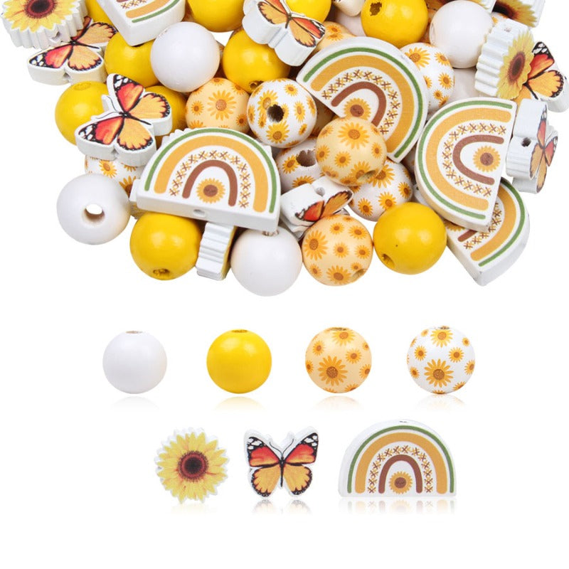 Wholesale 20pcs 16mm Sunflower Colorful Butterfly Wooden Beads