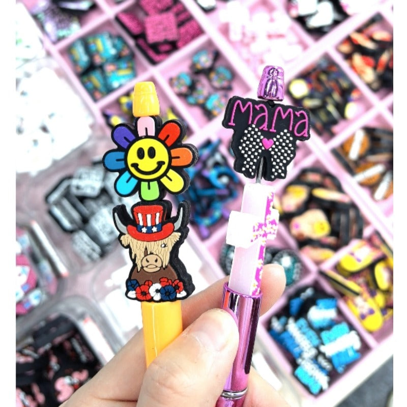 Wholesale 20pcs 2D silicone pen apple flower book teacher beads
