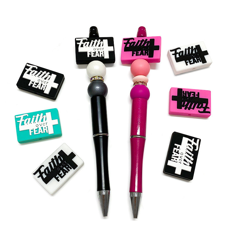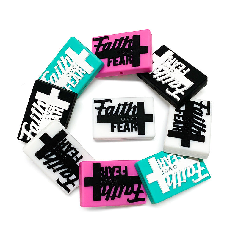 Wholesale 10pcs Rectangular Faith English Creative Silicone Beads