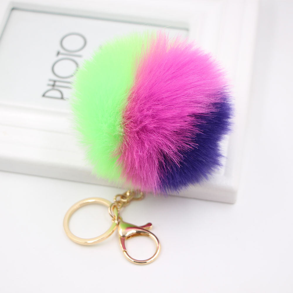 Wholesale Color Block Imitation Rabbit Fur Colorful Plush Ball Keychain