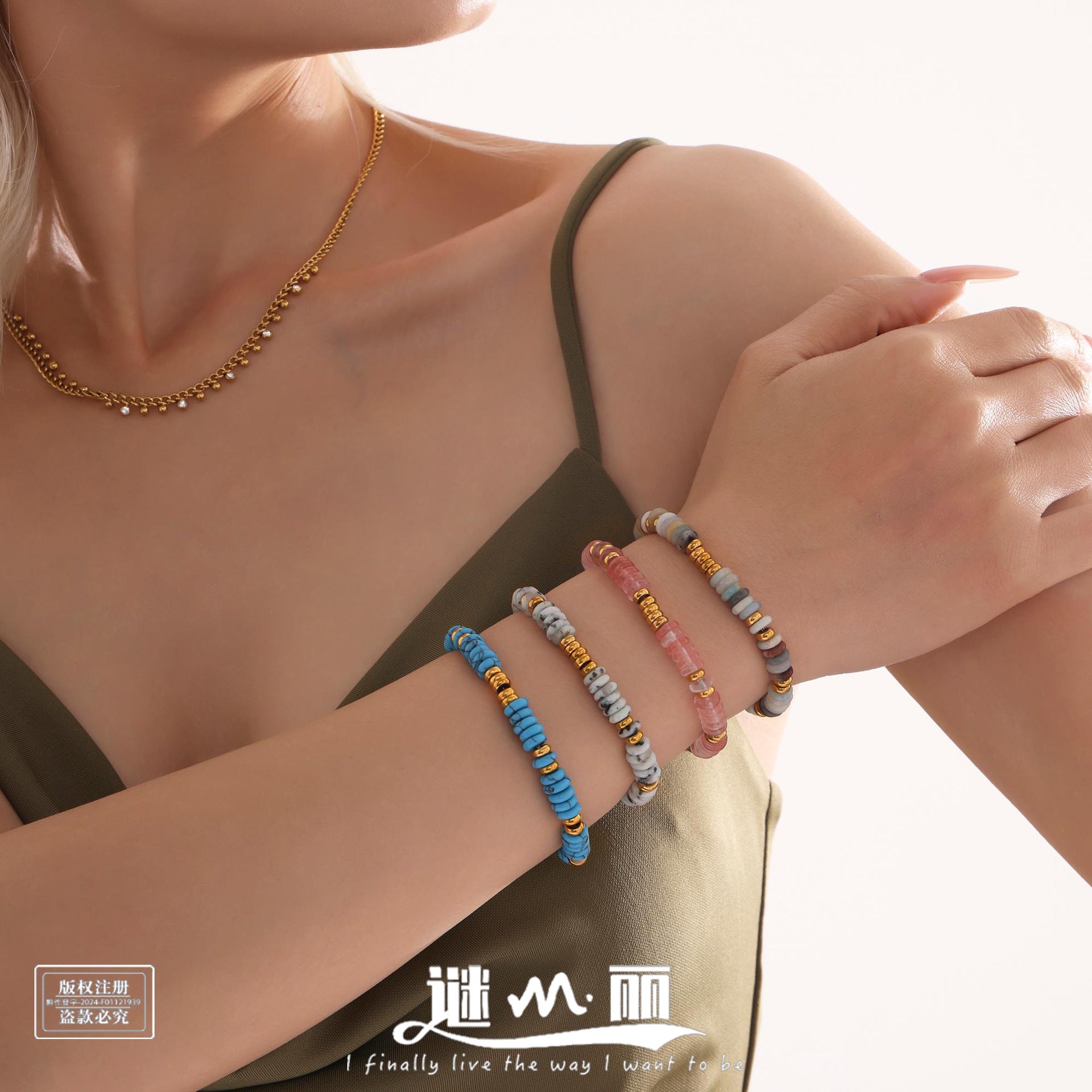 Wholesale Abacus Bead Titanium Steel Gold Plated Bracelet