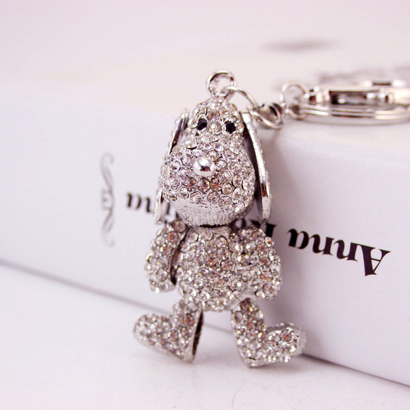 Wholesale Alloy rhinestone silver cute puppy car keychain