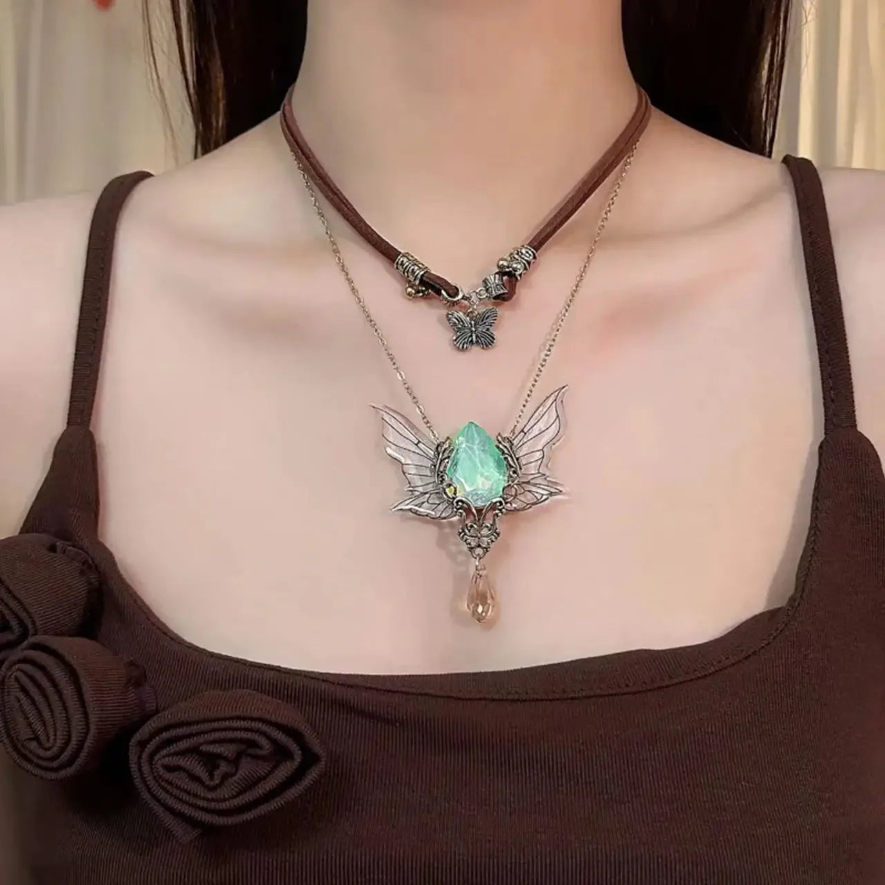 Wholesale Butterfly Tassel Leather Two-Piece Clavicle Necklace