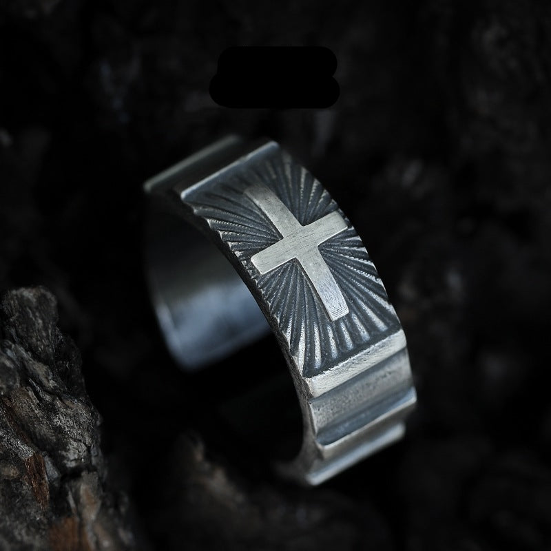 Wholesale Cross Ring Men's Trendy Gear Niche Unique Boys Open Personality Ring