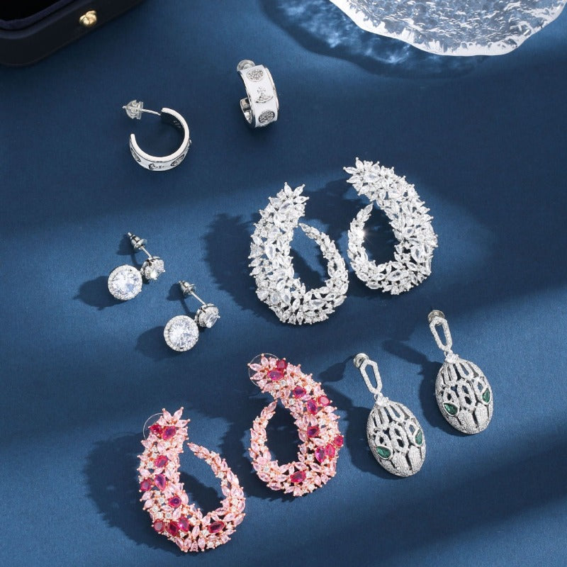 Wholesale Exaggerated Flower Curved Copper Earrings