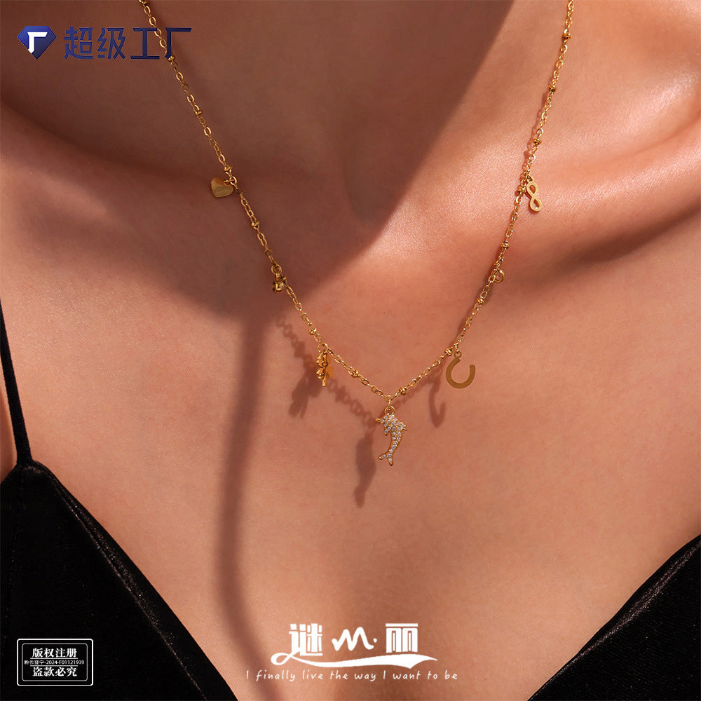Wholesale Mystique Stainless Steel 5A Zircon Dolphin Multi-accessories Clavicle Chain Light Luxury Elegant Color-free Girls' Necklace Jewelry