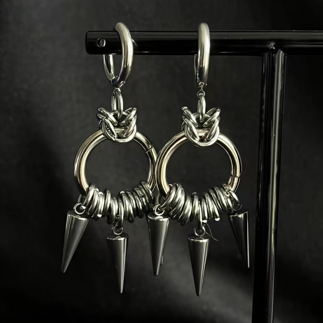 Wholesale New Gothic Punk Stainless Steel Ear Hook Women's Rivet Pointed Cone Double-ring Punk High-grade Earrings