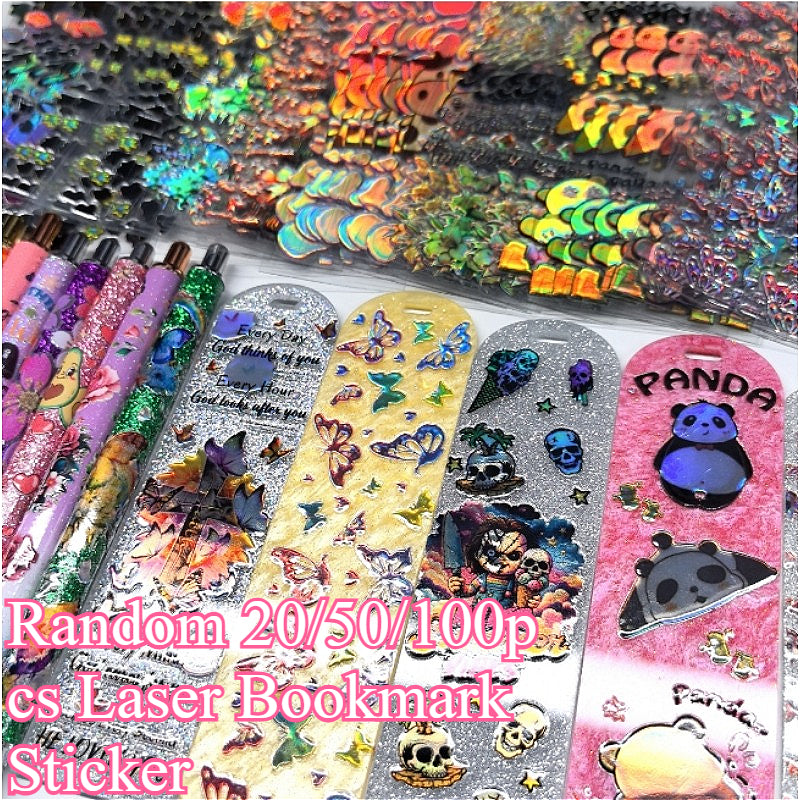 Wholesale Random Holographic Stickers 20/50/100pcs UV DTF Wraps Pen Sticker & Cartoon Random Styles Bookmark Stickers for Crafts Wraps
