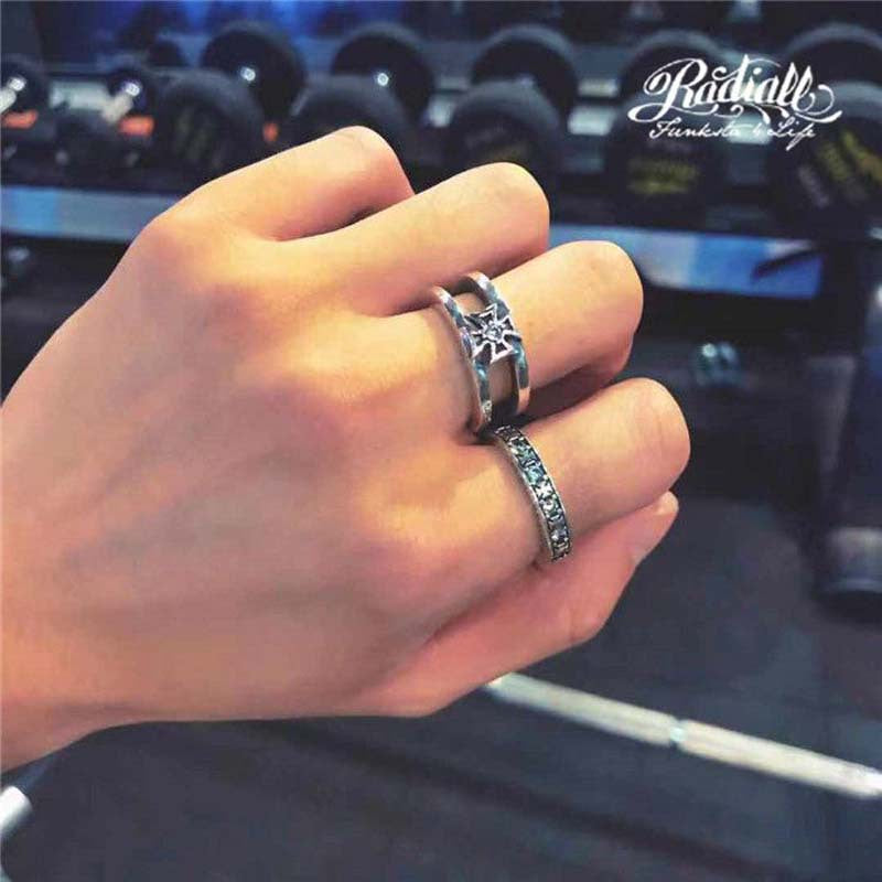 Wholesale Retro cross ring for men and women 925 silver personality trendy disco open ring
