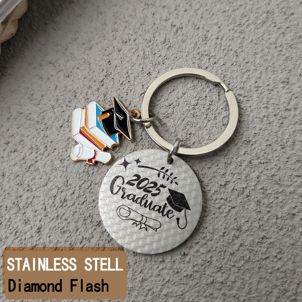Wholesale Stainless steel round keychain for graduation season and opening gift