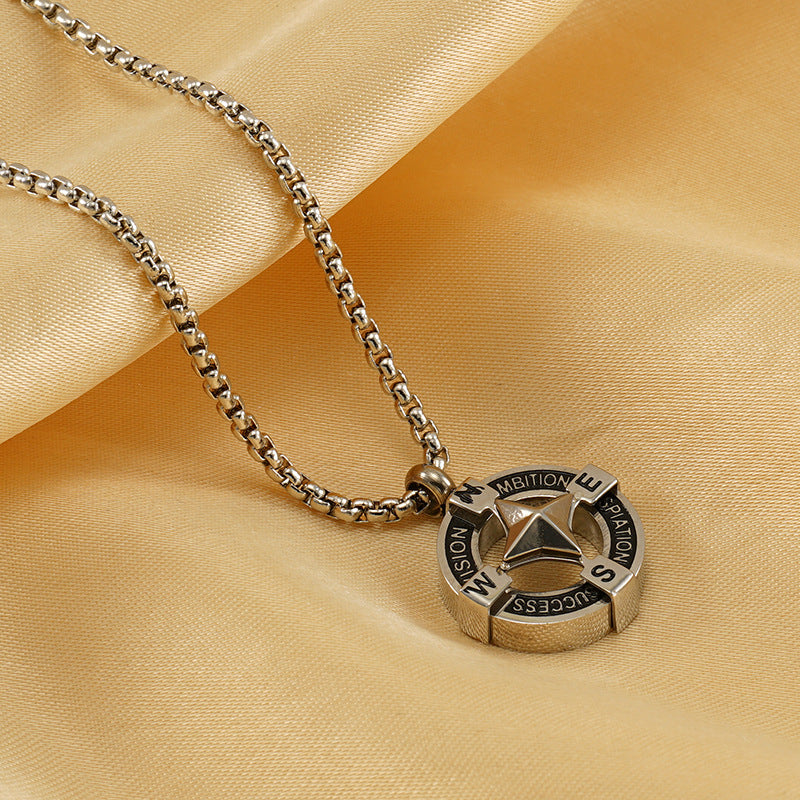Wholesale Titanium steel round hollow compass vintage Baman star necklace