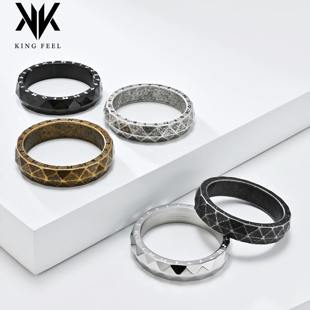 Wholesale Vintage diamond faceted Viking text stainless steel ring