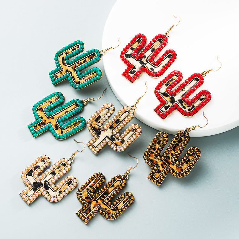 Wholesale Vintage leather exaggerated crystal leopard print earrings