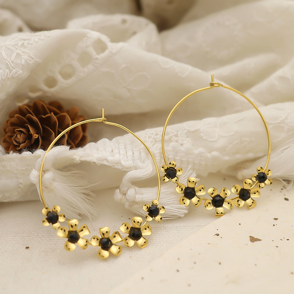 Wholesale Vintage Small Flower Stainless Steel Gold-plated Earrings