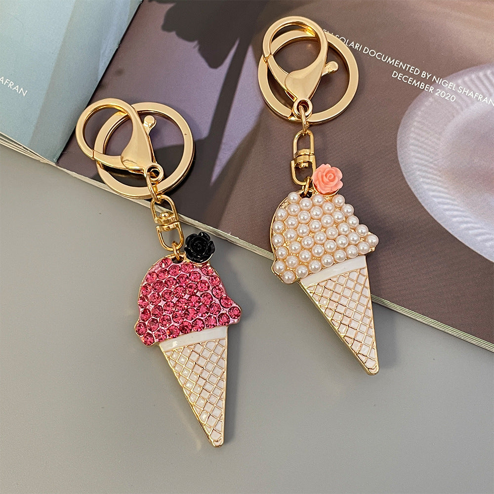 Wholesale Pearl Ice Cream Car Diamond Keychain