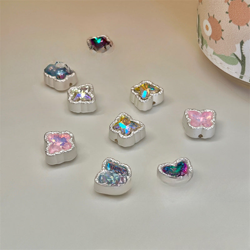 Wholesale 5PCS/PACK Butterfly Alloy Colored Diamond Perforated Beads