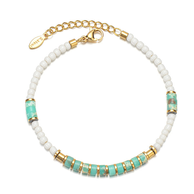 Wholesale 14k Gold Turquoise Stainless Steel Three Colors Beaded Bracelet OLY-BT-HongF001