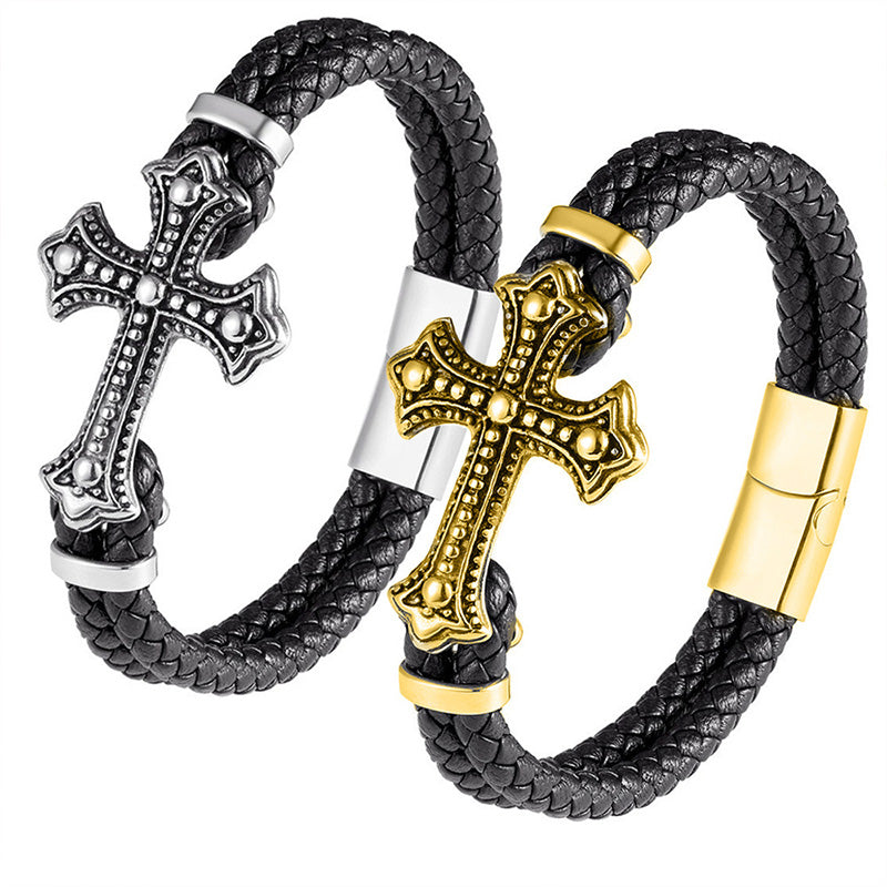 Wholesale Genuine Leather Stainless Steel Woven Bracelet OLY-BT-LongR002