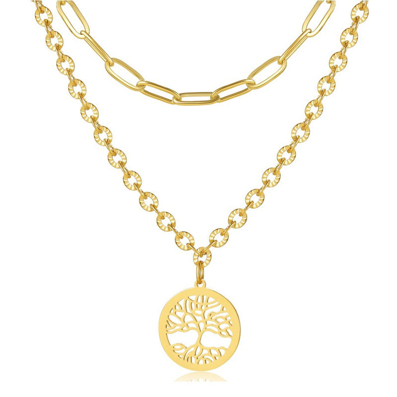 Wholesale Stainless Steel Gold Plated Double Stitching Tree of Life Necklace OLY-NE-XP003