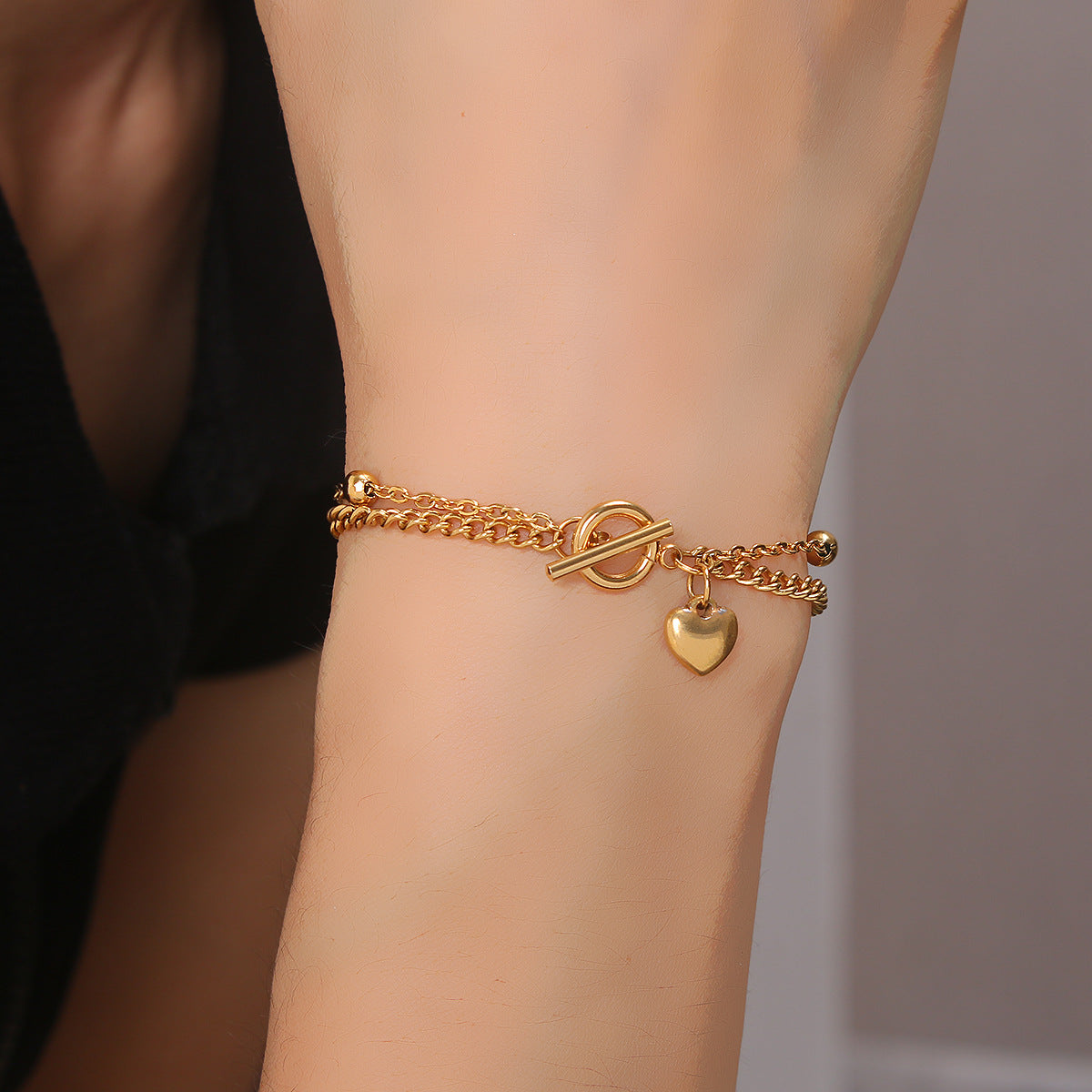 Wholesale Stainless Steel Gold Bead OT Buckle Love Double Layer Bracelet