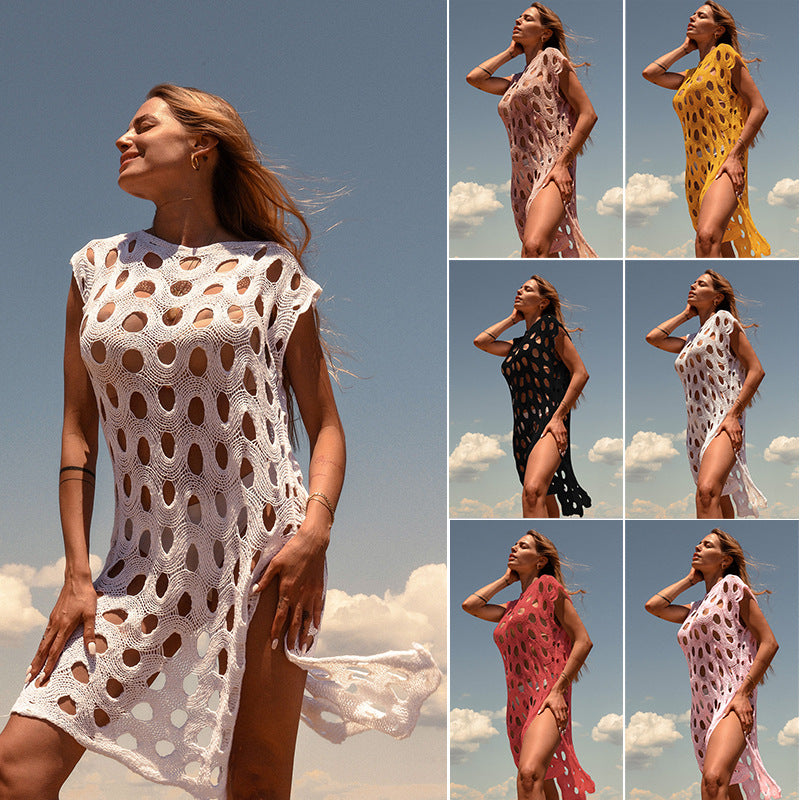 Wholesale Knitted Large Round Hollow Out Pullover One-piece Beach Cover Up