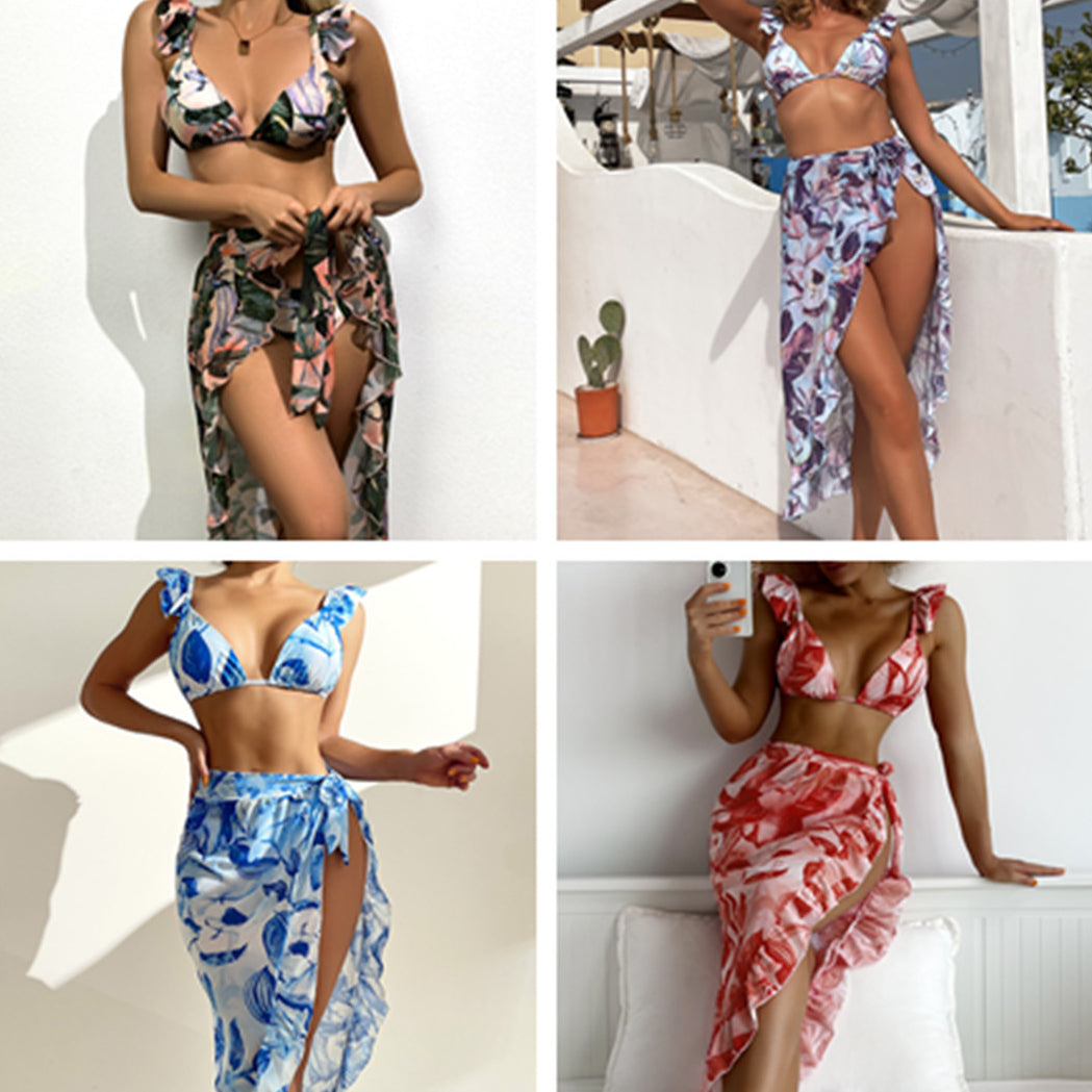 Wholesale Multicolor Double Sided Mesh Polyester Swimwear Three-Piece Set