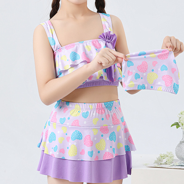 Wholesale split hooded skirt girl swimsuit two-piece set big kids Swimwear