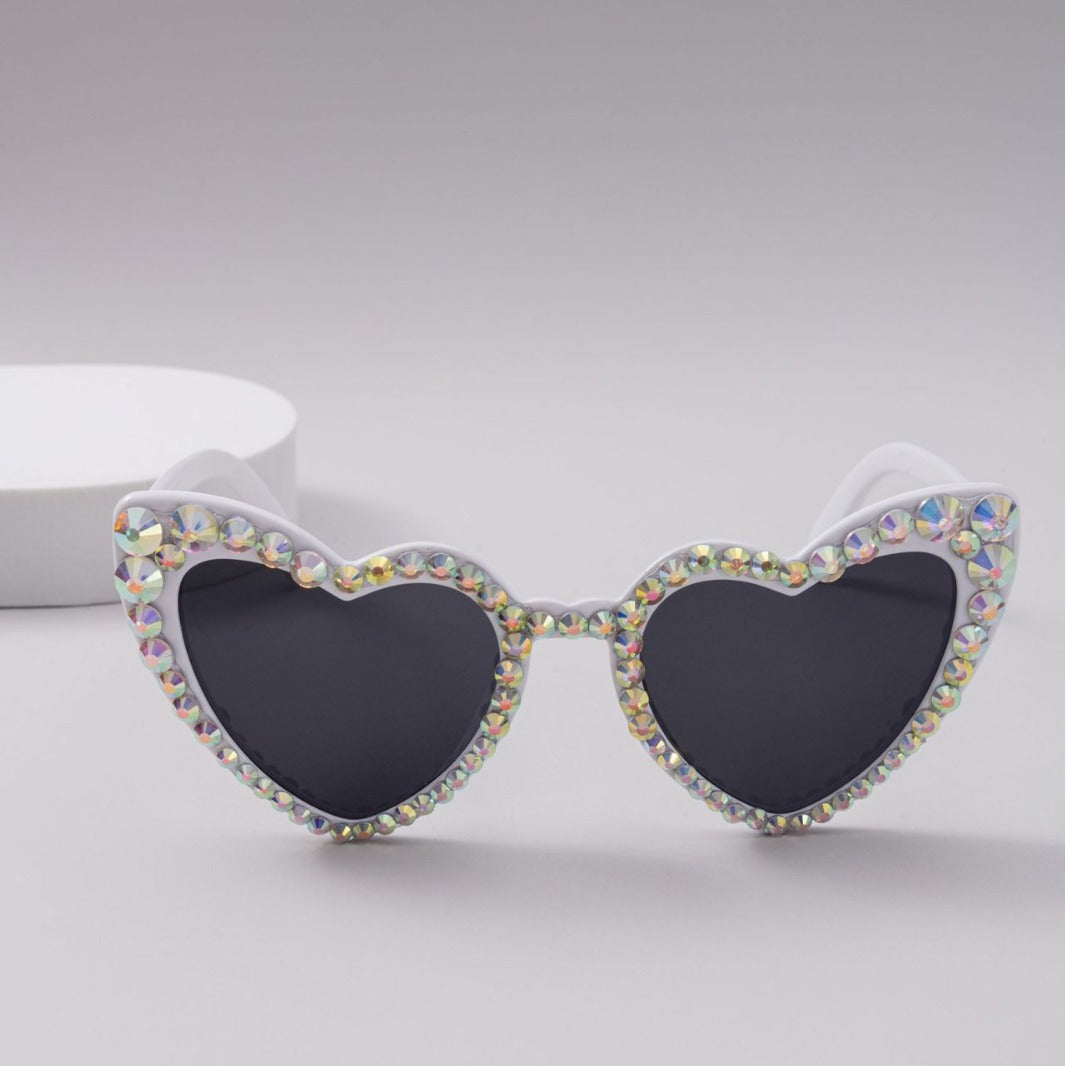 Wholesale Heart-shaped diamond sunglasses, dot diamond handmade glasses 2024 new style women's cute cat-eye